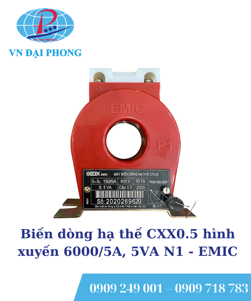 - Tên sản phẩm: Biến dòng hạ thế EMIC CXX0.5 hình xuyến 6000/5A, 5VA N1