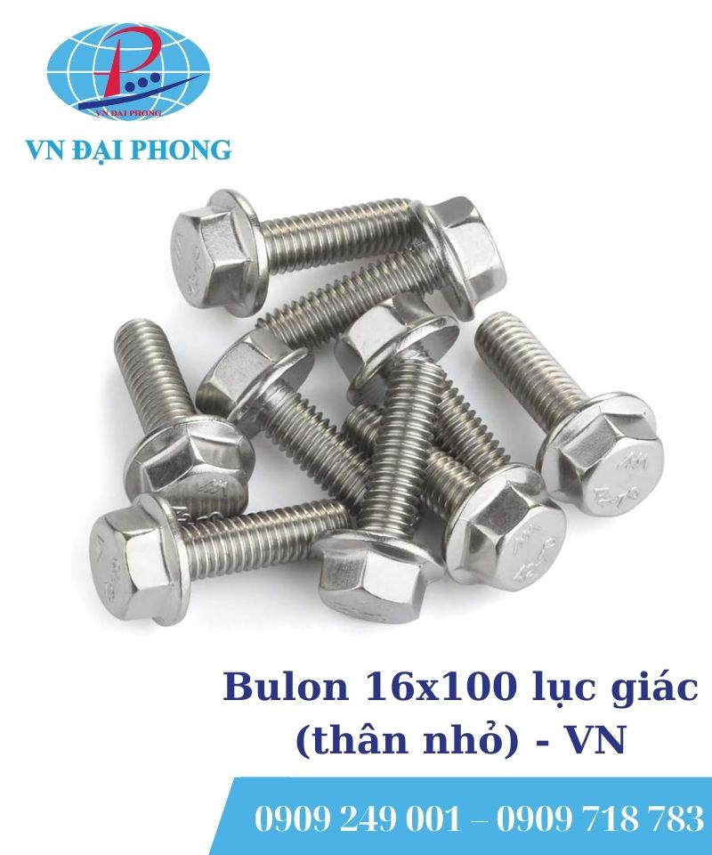 - Tên sản phẩm: Bulon 16×100 lục giác (thân nhỏ)