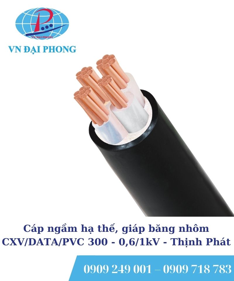 Cáp ngầm hạ thế Thịnh Phát, giáp băng nhôm CXV/DATA/PVC 300 – 0,6/1kV