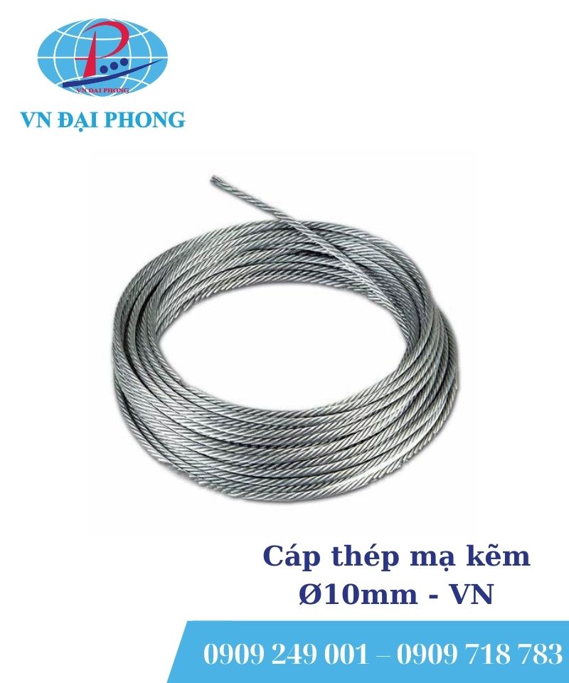 - Tên sản phẩm: Cáp thép mạ kẽm Ø10mm