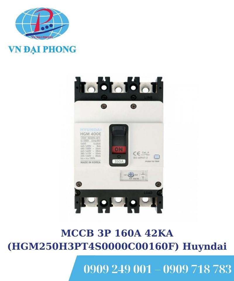- Tên sản phẩm: Cầu dao Huyndai MCCB 3P 160A 45KA (HGM400E3PT4S0000C00350F)