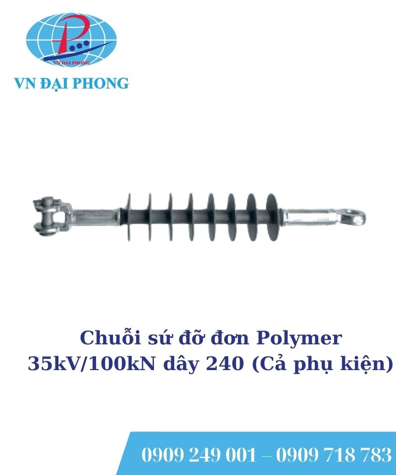 - Tên sản phẩm: Chuỗi sứ đỡ đơn Polymer DTR/TQ 35kV/100kN dây 240 (Cả phụ kiện)