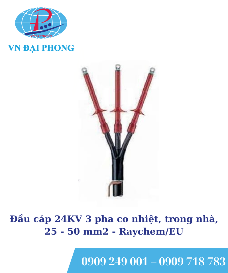 - Tên sản phẩm: Đầu cáp Raychem/ EU 24KV 3 pha co nhiệt, trong nhà, 25 – 50 mm2