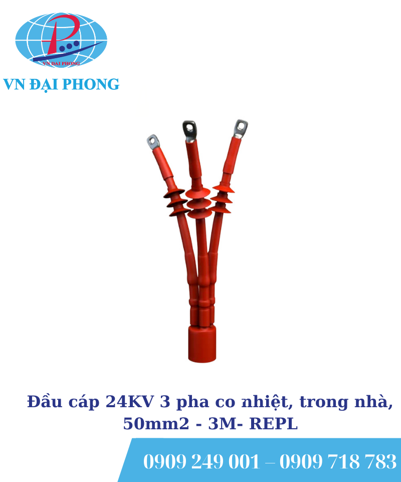 - Tên sản phẩm: Đầu cáp REPL 24KV 3 pha co nhiệt, trong nhà, 50mm2 – 3M