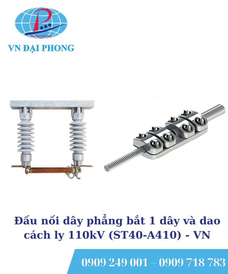 • Tên sản phẩn: Đấu nối dây phẳng bắt 1 dây và dao cách ly 110kV (ST40-A410)