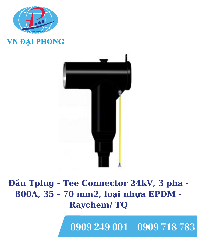 - Tên sản phẩm: Đầu Tplug – Tee Connector Raychem/ TQ 24kV, 3 pha – 800A, 35 – 70 mm2, loại nhựa EPDM