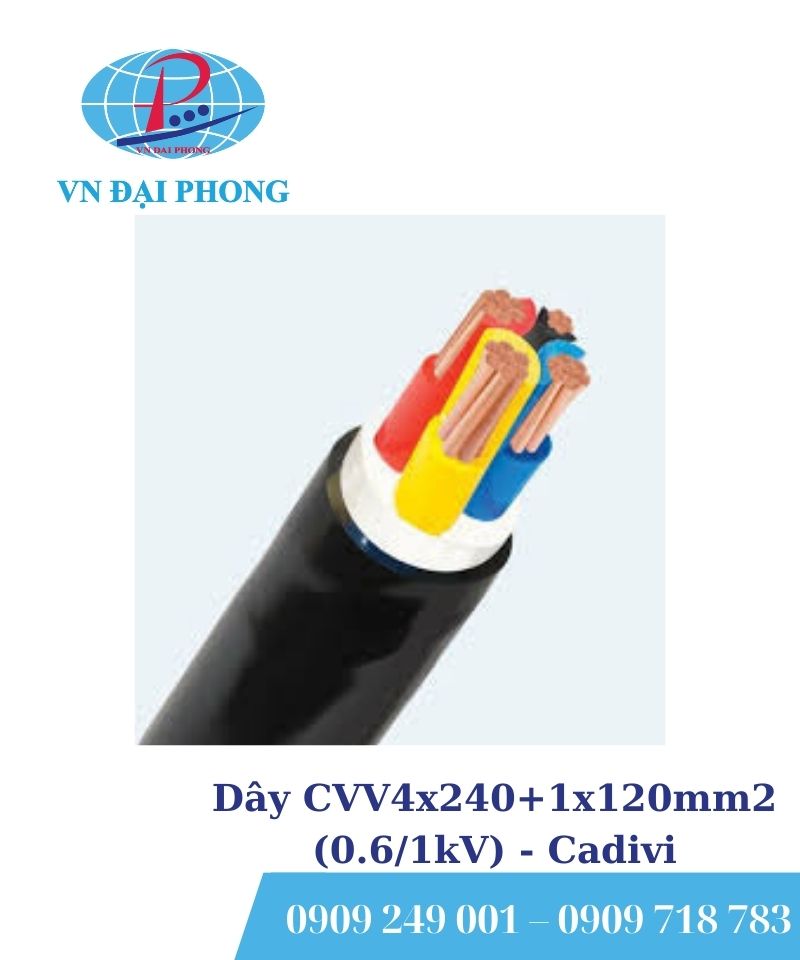 Dây cáp điện Cadivi CVV 4x240+1x120mm² (0.6/1kV) là loại cáp điện lực hạ thế lõi đồng mềm, được thiết kế với 4 lõi chính tiết diện 240mm² và 1 lõi trung tính 120mm², thích hợp cho hệ thống điện ba pha bốn dây. Cáp sử dụng lớp cách điện và vỏ bọc PVC chất lượng cao, đảm bảo khả năng cách điện tốt, chống cháy lan và bền bỉ trong môi trường làm việc tiêu chuẩn. Với khả năng truyền tải điện ổn định ở điện áp 0.6/1kV, sản phẩm phù hợp cho các công trình dân dụng, tòa nhà cao tầng, nhà máy và hệ thống điện công nghiệp cần độ tin cậy cao và hiệu suất ổn định.