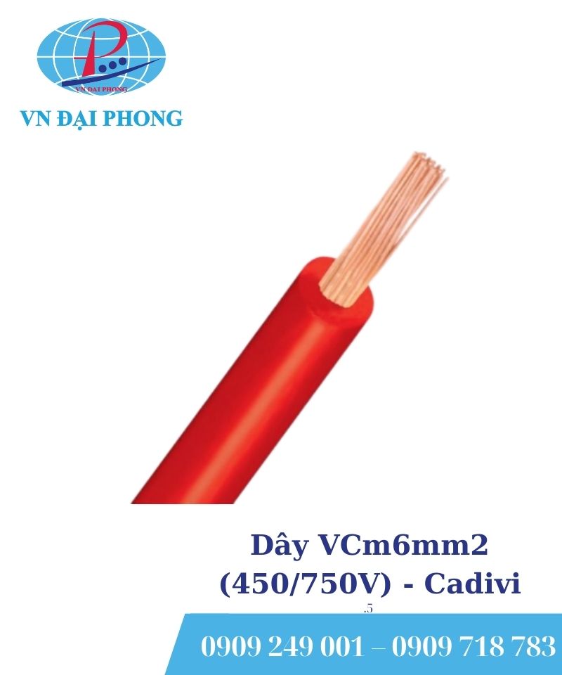 1. Thông số kỹ thuật Dây cáp điện Cadivi VCm6mm2 (450/750V)