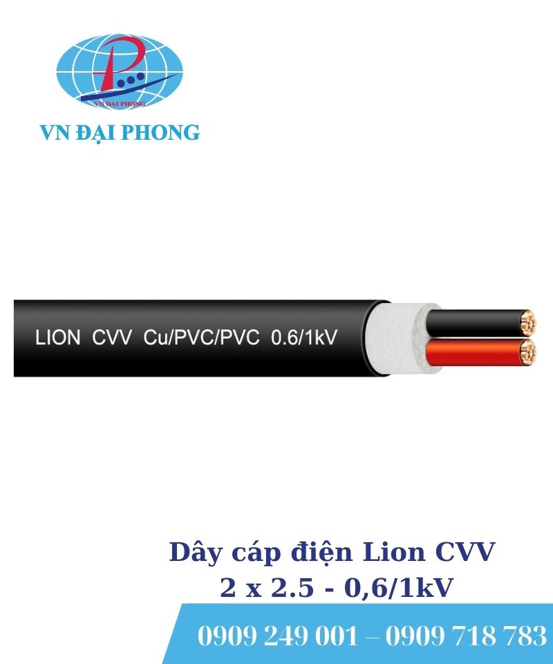 1. Thông số kỹ thuật Dây cáp điện Lion CVV 2 x 2.5 - 0,6/1kV