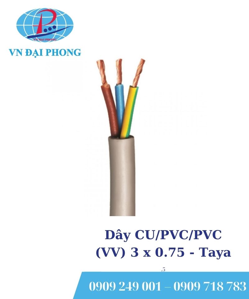 1. Thông số kỹ thuật về Dây cáp điện Taya CU/PVC/PVC (VV) 3 x 0.75