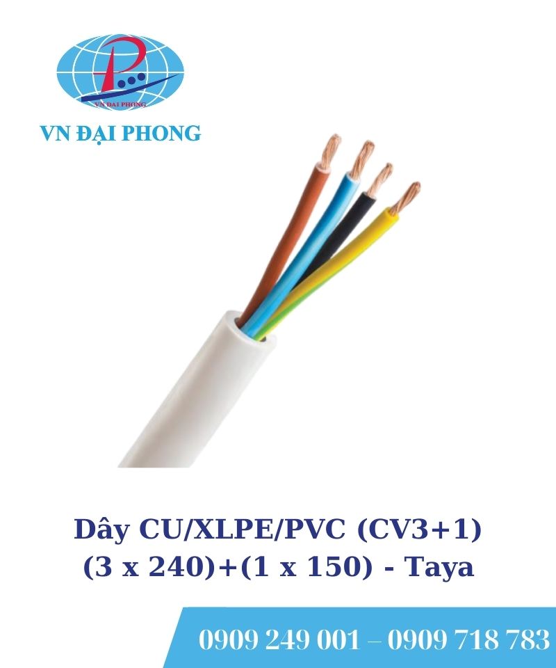 • Tên sản phẩm: Dây cáp Taya CU/XLPE/PVC (CV3+1) (3 x 240)+(1 x 150)