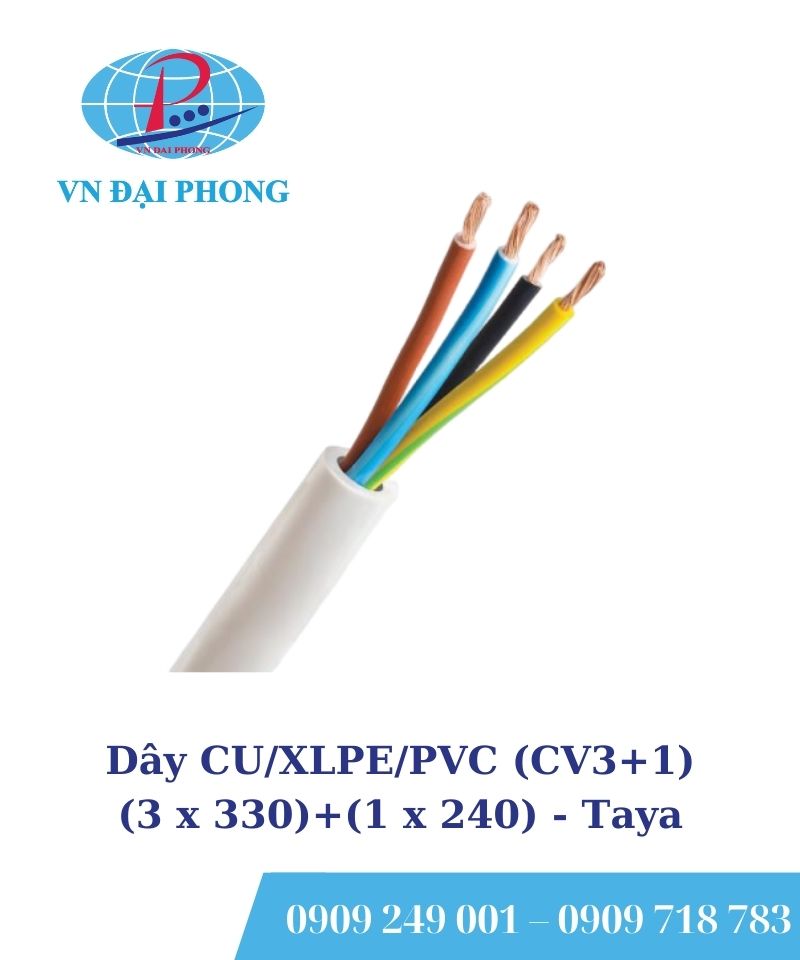 • Tên sản phẩm: Dây cáp Taya CU/XLPE/PVC (CV3+1) (3 x 330)+(1 x 240)