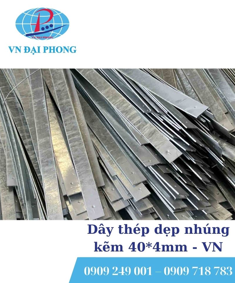 - Tên sản phẩm: Dây thép dẹp nhúng kẽm Việt Nam 40*4mm