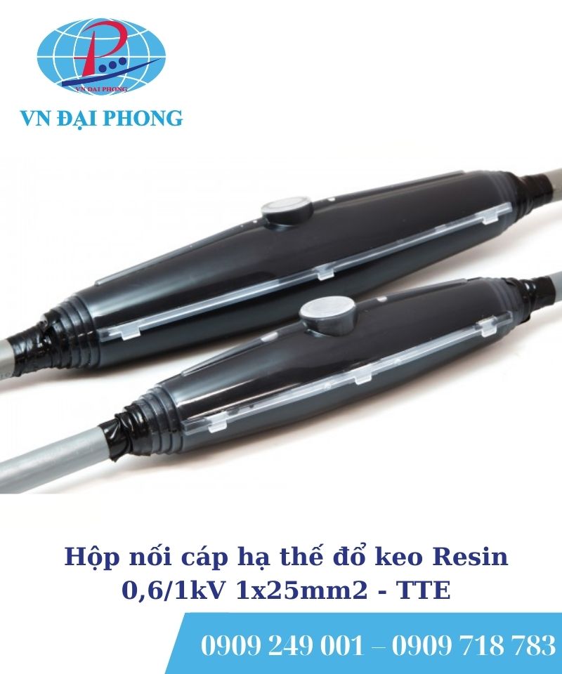 - Tên sản phẩm: Hộp nối cáp hạ thế đổ keo TTE Resin 0,6/1kV 1x25mm2