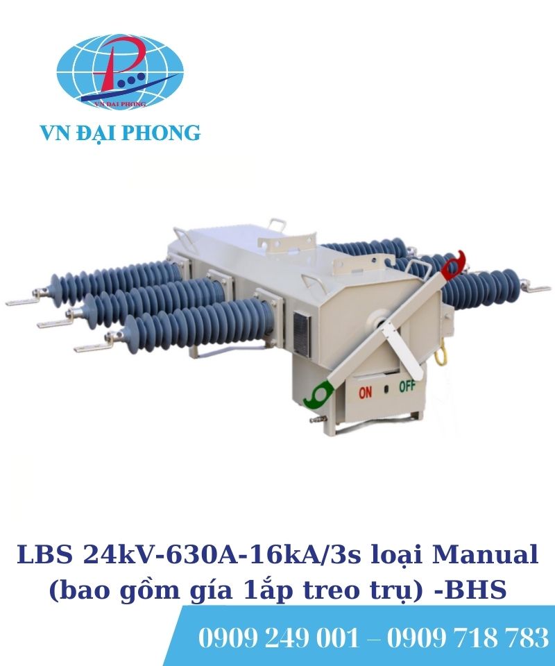 - Tên sản phẩm: LBS BHS 24kV-630A-16kA/3s loại Manual (bao gồm gía 1ắp treo trụ)