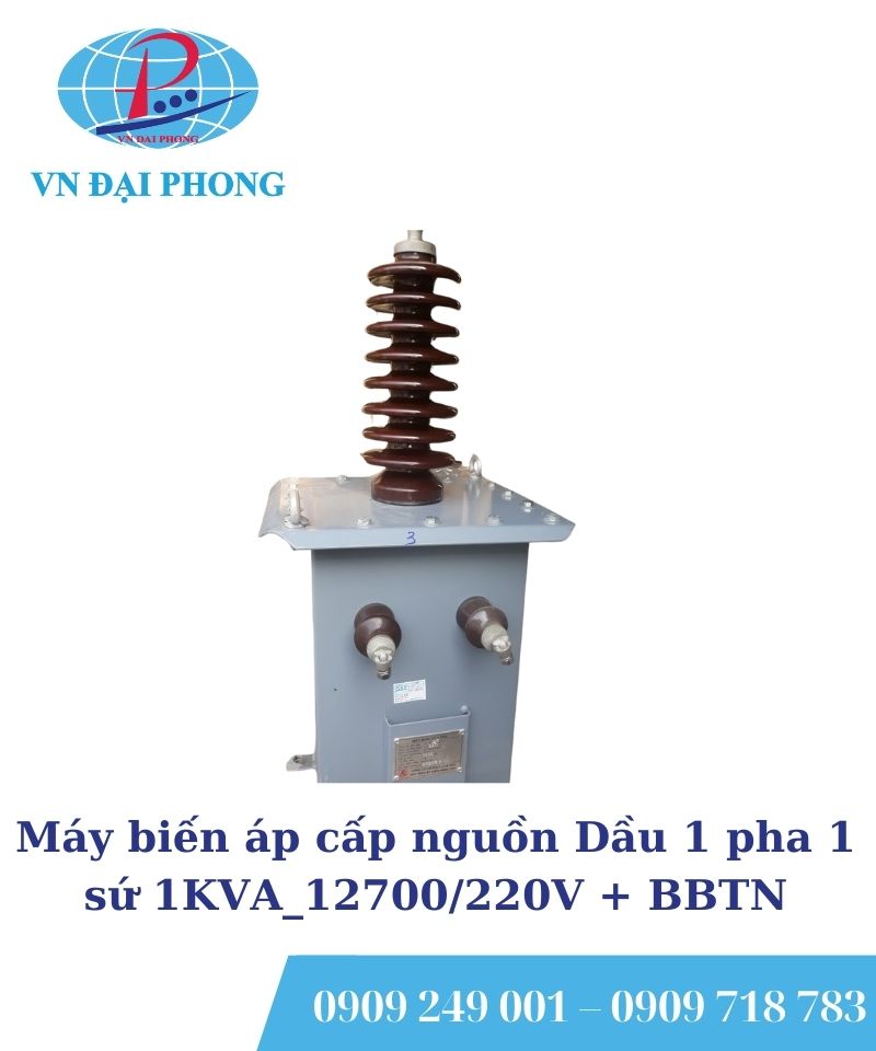 Máy biến áp cấp nguồn Dầu 1 pha 1 sứ 1KVA_12700/220V + BBTN