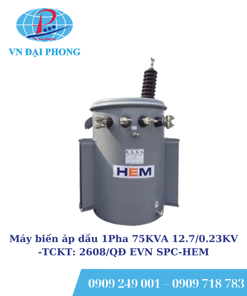 Máy biến áp dầu 1Pha HEM 75KVA 12.7/0.23KV -TCKT: 20/QĐ – HĐTV/TCKT: 96/QĐ – HĐTV