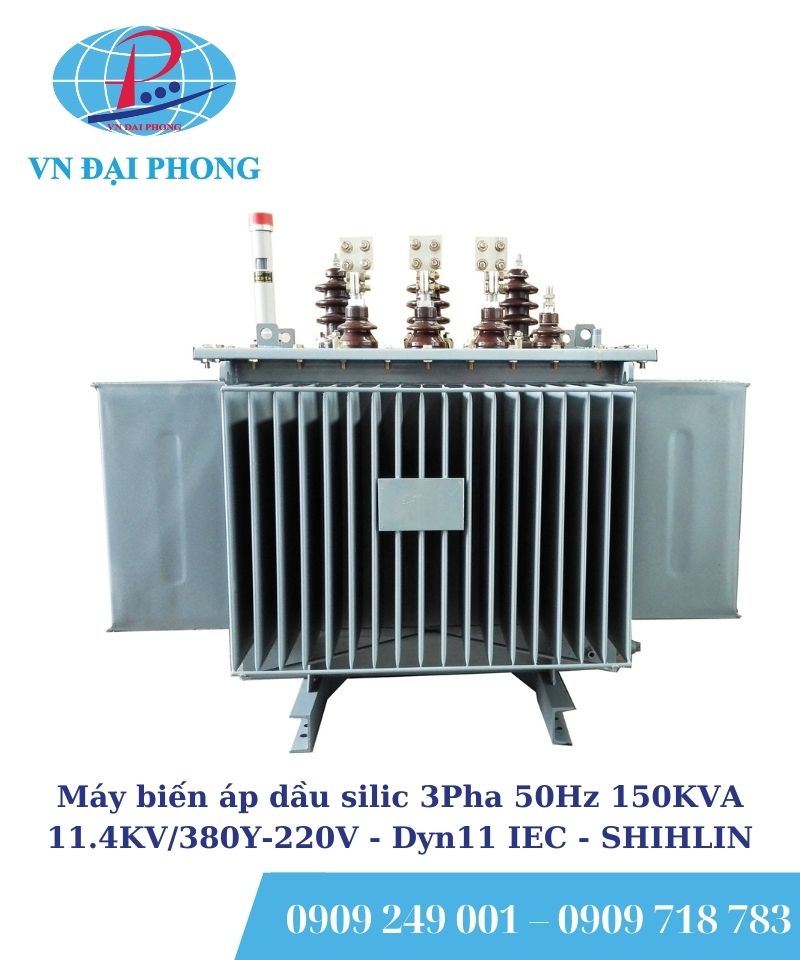 - Tên sản phẩn: Máy biến áp dầu silic 3 Pha SHIHLIN 50Hz 150KVA 11.4KV/380Y-220V – Dyn11 IEC