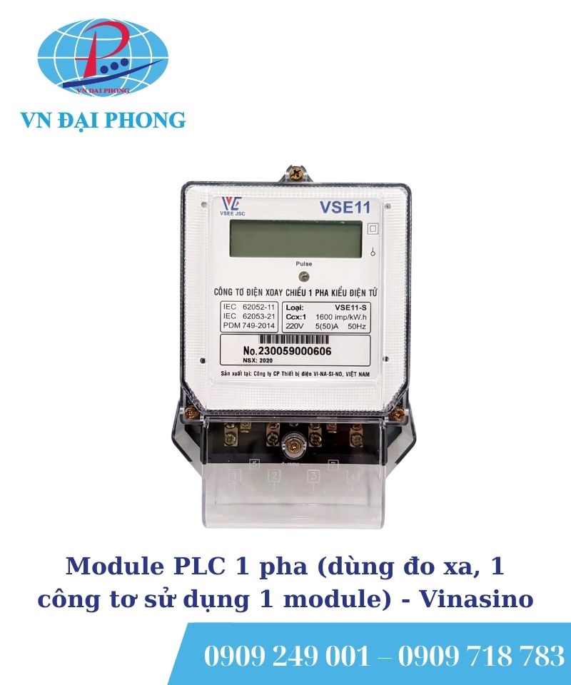 - Tên sản phẩm: Công tơ điện tử Module PLC 1 pha Vinasino (dùng đo xa, 1 công tơ sử dụng 1 module)
