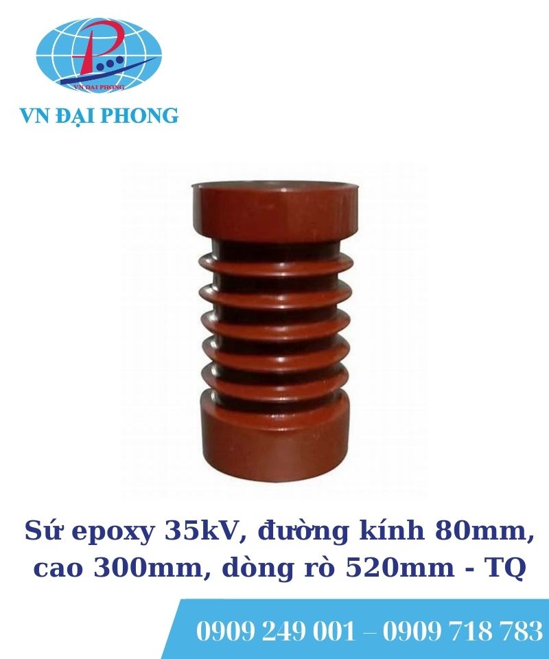 - Tên sản phẩm: Sứ đỡ thanh cái epoxy 35kV, đường kính 80mm, cao 300mm, dòng rò 520mm
