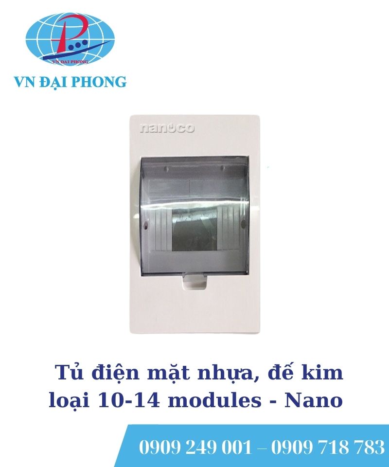 - Tên sản phẩm: Tủ điện mặt nhựa Nano, đế kim loại 10-14 modules